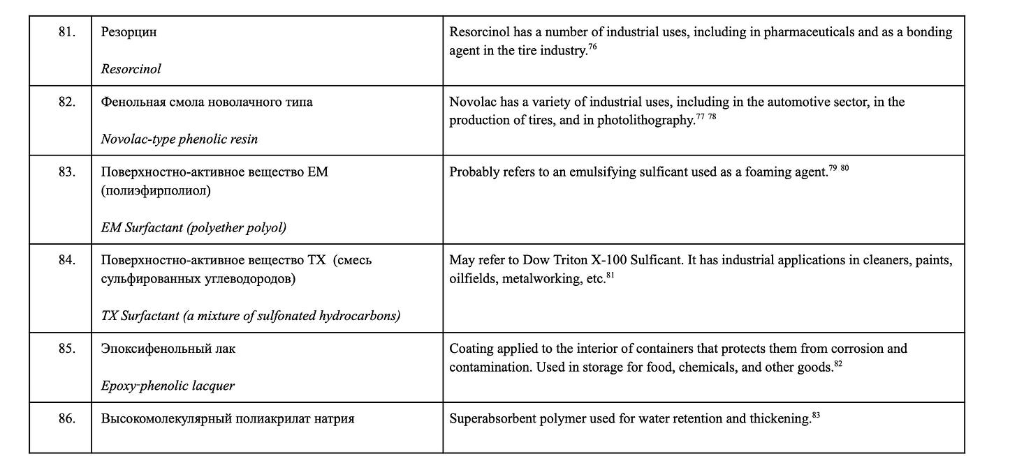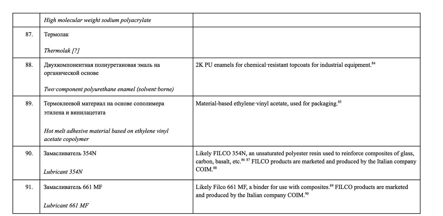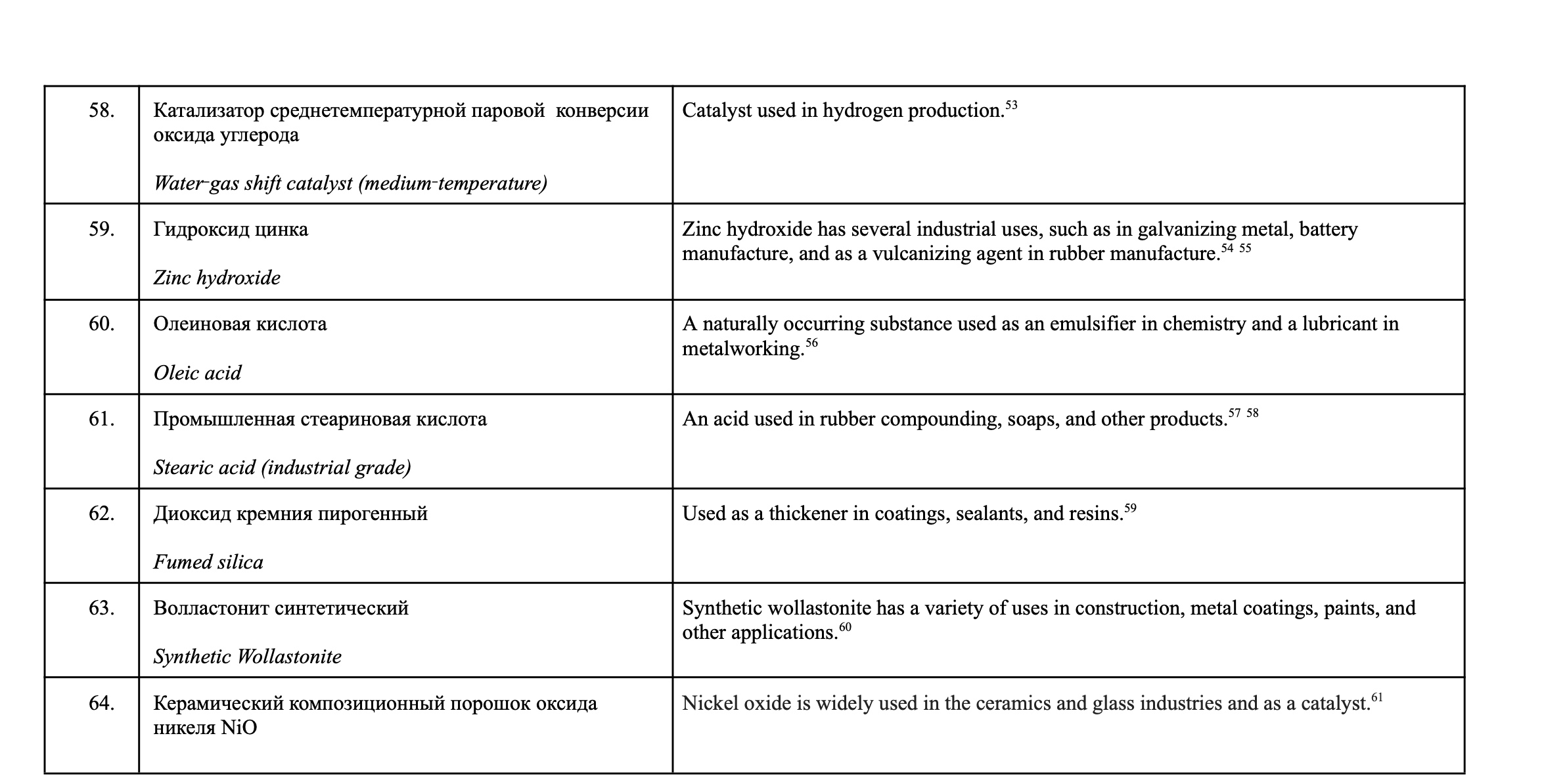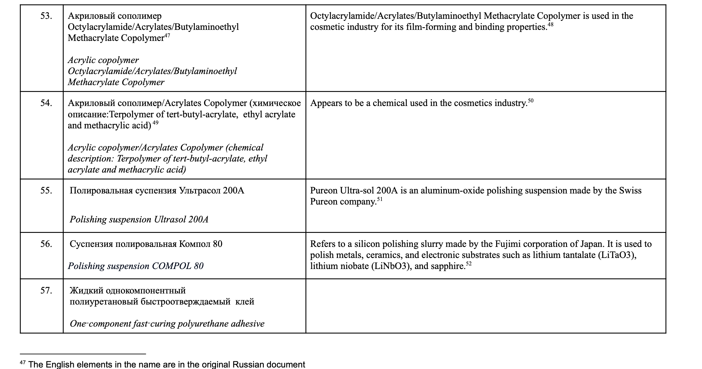 Well, we have that list for you. Screenshots and the full document are below the fold. As I stated in the article, this stuff is weedy. But that does not mean it’s important. The Russian economy cannot function without these chemicals, and it cannot manufacture them internally.