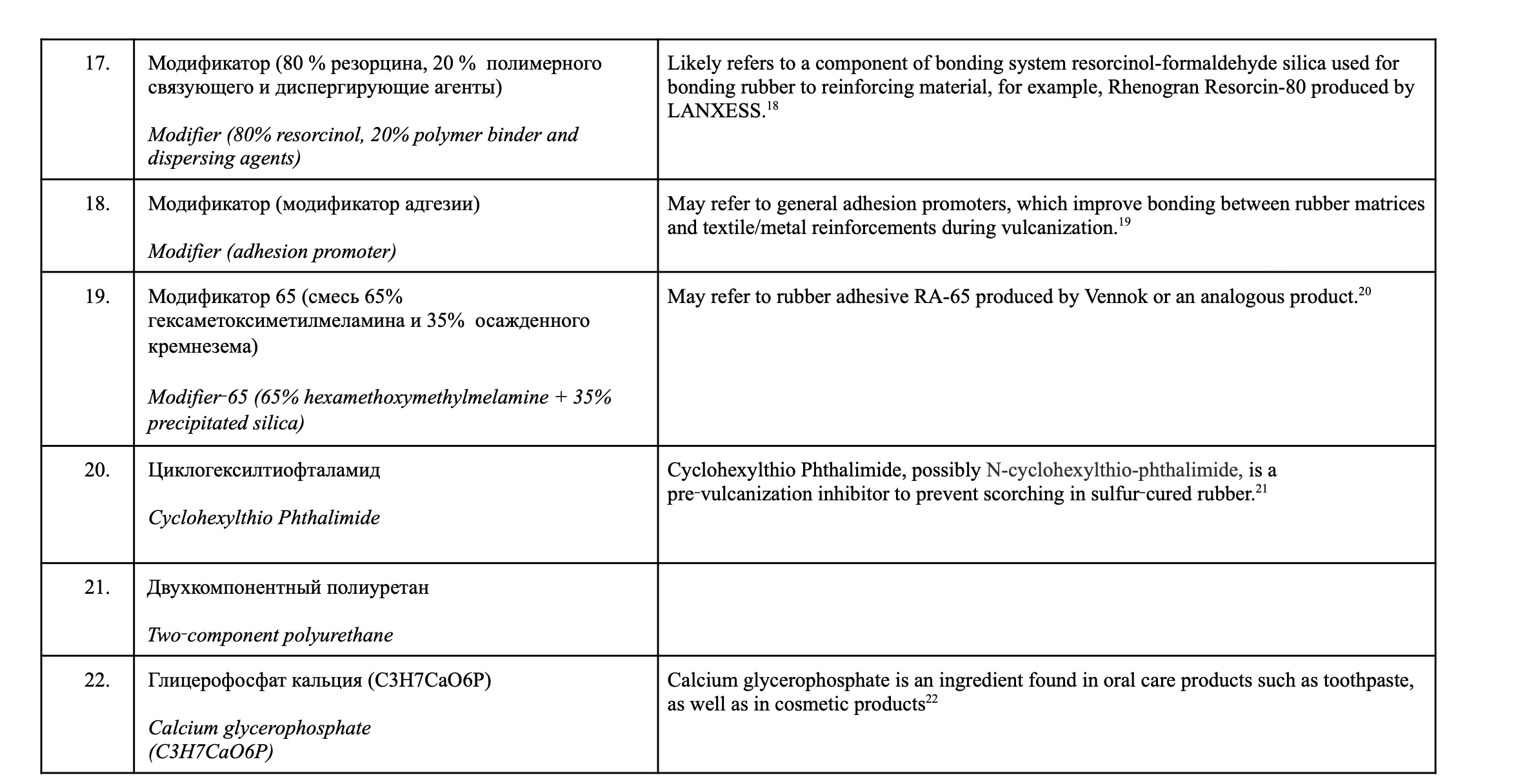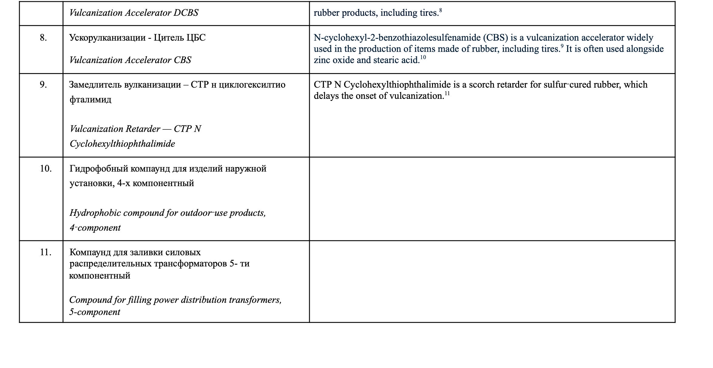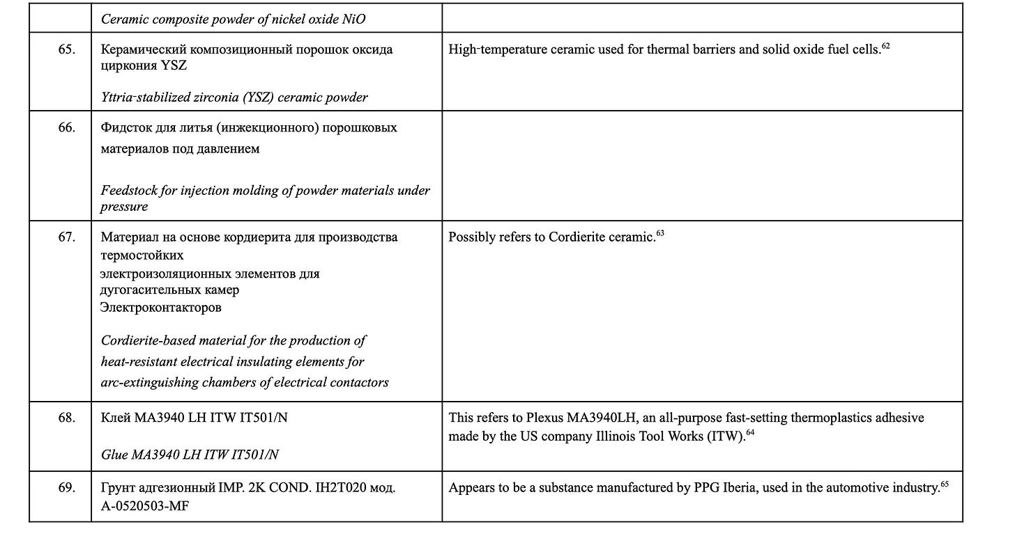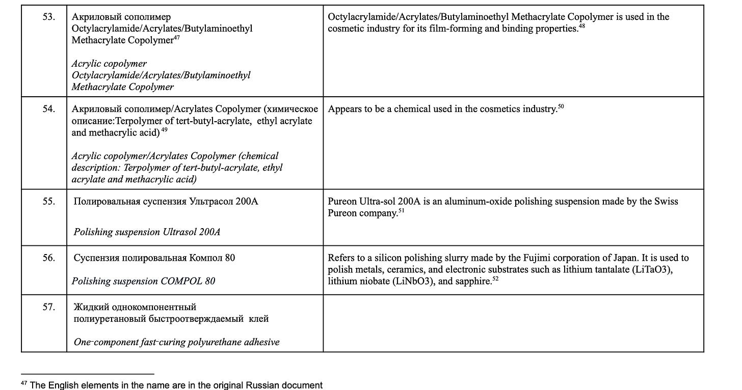 Well, we have that list for you. Screenshots and the full document are below the fold. As I stated in the article, this stuff is weedy. But that does not mean it’s important. The Russian economy cannot function without these chemicals, and it cannot manufacture them internally.